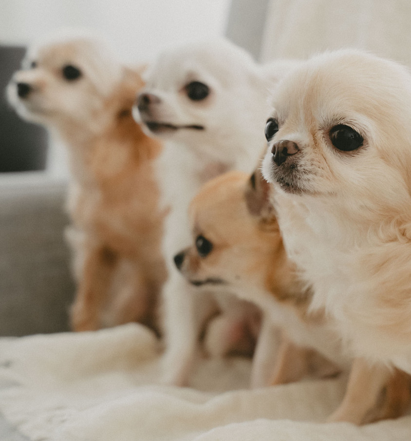それぞれに個性があって、とっても可愛いチワワ4姉妹!スタジオに4匹集まるとみんな四方八方へと・・・(笑)