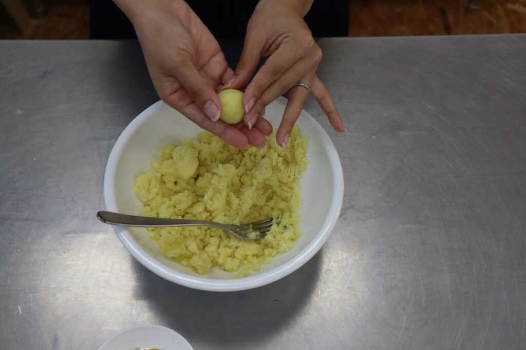 - 荒熱が取れたら、ワンコのお口サイズに合わせて小さなボール状に丸めます。