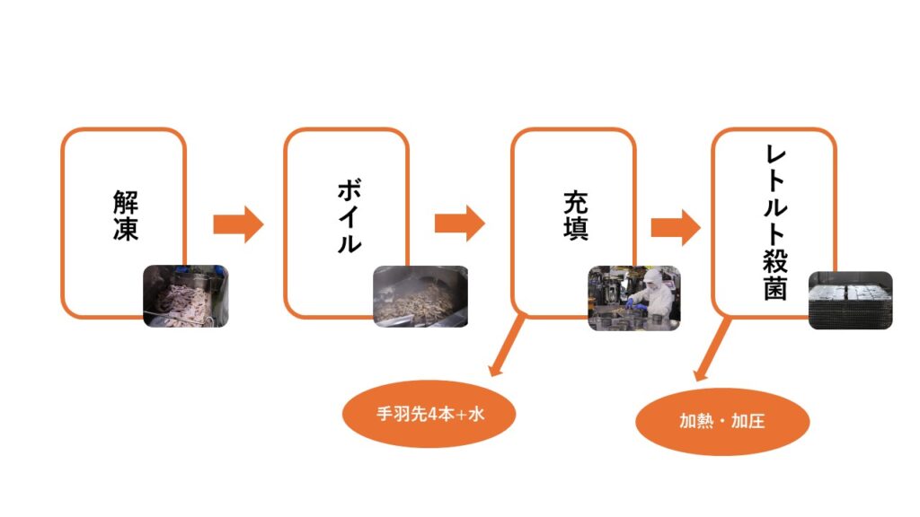 手羽先スープの製造は、大きく4つの工程に分かれています。