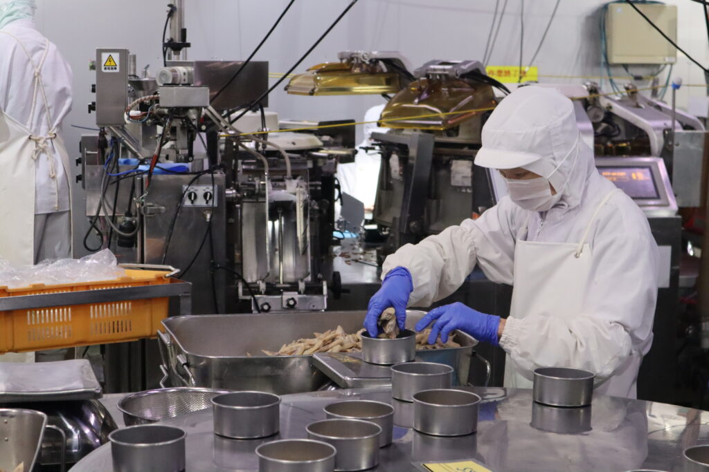 レトルトパックに詰めた後も、手作業と機械で異物混入や本数・重量の確認は徹底しています。