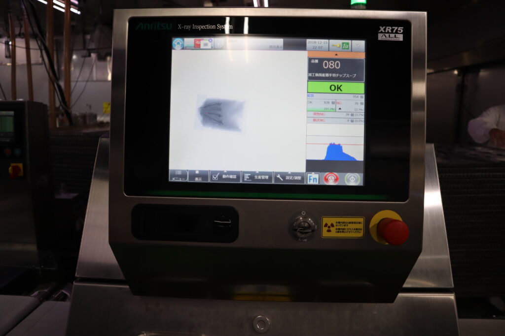 次にX線で、手作業で見落とした重量不足や本数過多のパック、金属やプラスチックなどの異物が入っていないか細かくチェックしています。
