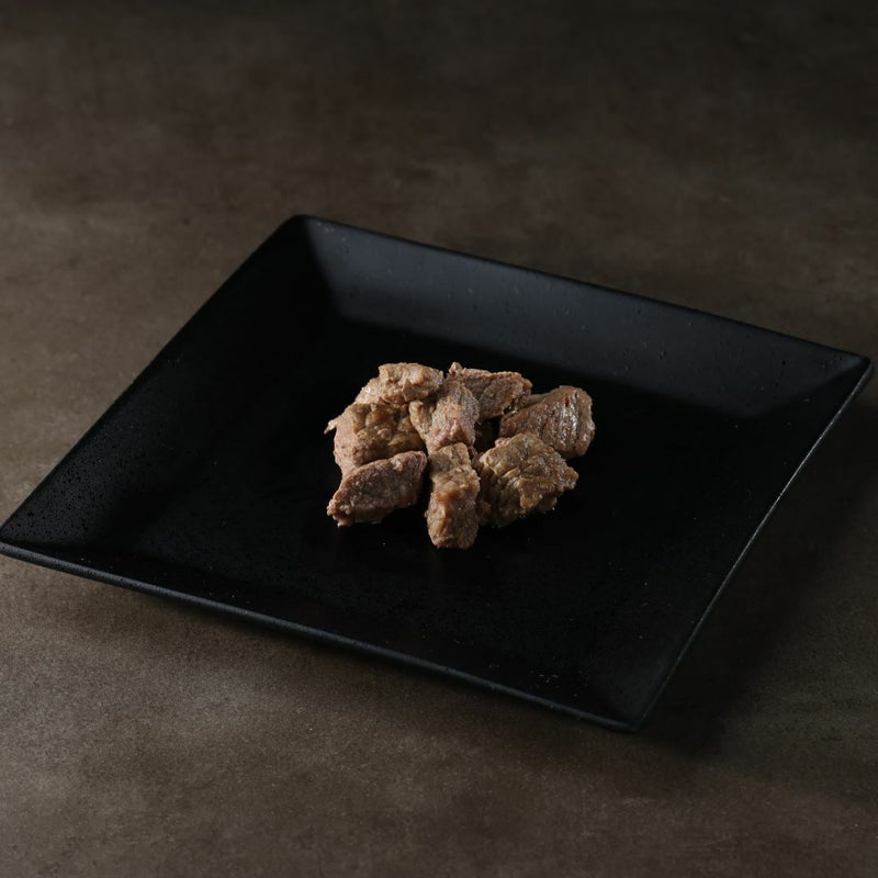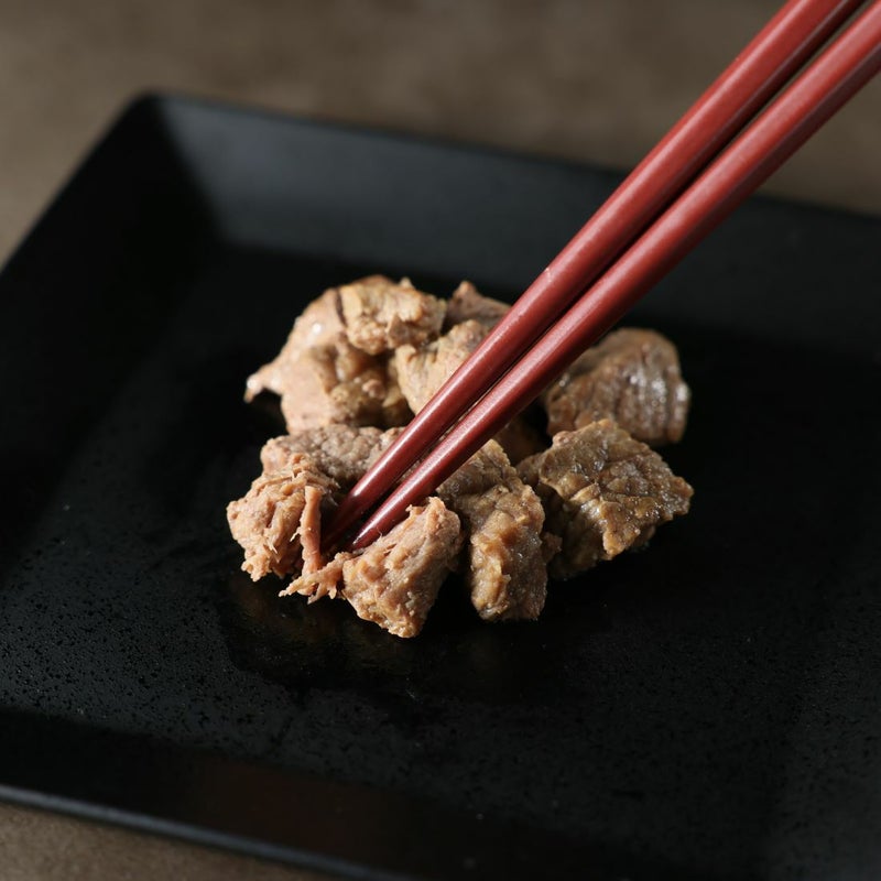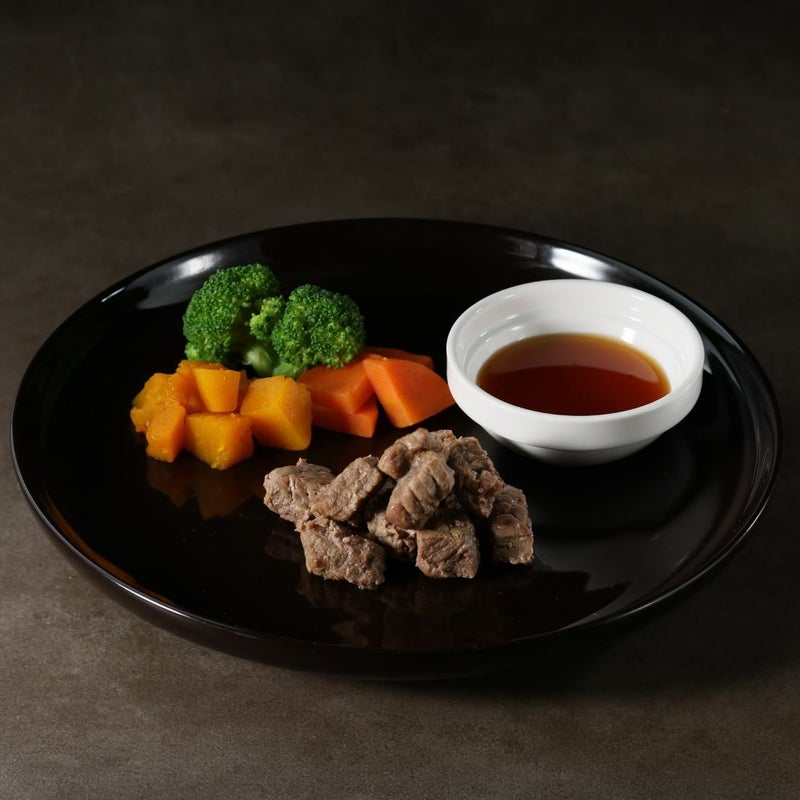 ※肉を水にさらしたり、下茹ですることで防ぐ方法もありますが、ワンコが牛肉本来の味わいを最大限愉しめるよう、旨みをそのまま閉じ込める調理法にこだわりました。