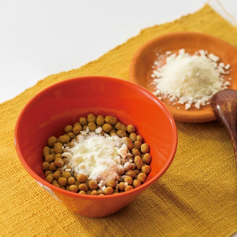 ・細かなパウダーのため、そのまま与えるとむせることがあります。食べづらい場合は、水やぬるま湯に溶かして与えてください。