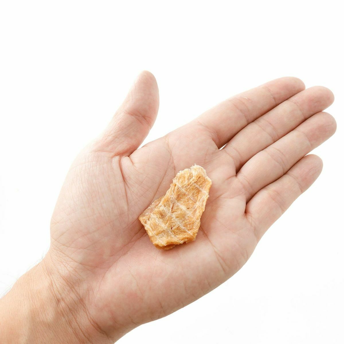 与えやすいサイズと固さにするため、加工職人によって独自の技術で丁寧に薄切り。その後、低温風でじっくりと乾燥させました。機械任せにせず、食材の様子を見ながら時間や温度を調節することで、香ばしく、サックリとした食感に。また、含水量を10%以下にまで下げることで、保存料を添加することなく1年の保存期間を実現しています。