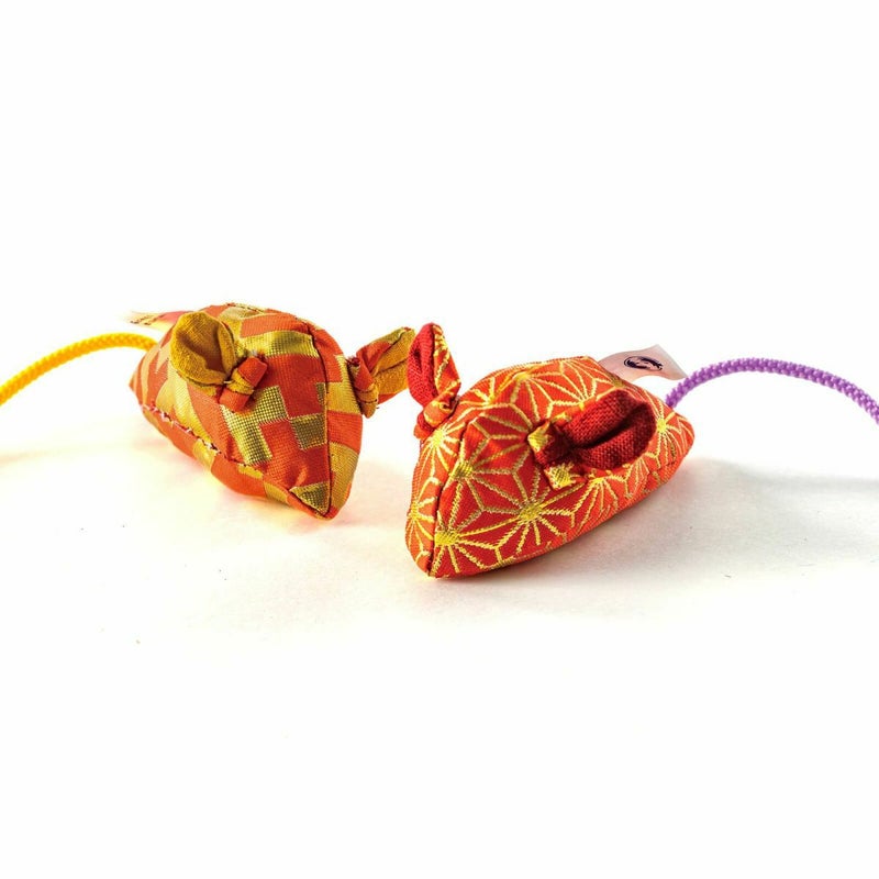 せっかくなので、桐生が誇る豪華な「金襴生地」を使ったらどうだろう?ひな人形の衣装にも使われている金糸や銀糸を贅沢にあしらった生地を選び、猫の気持ちになって試行錯誤しました。どうやったら猫が楽しく遊んでくれるのかと頭をひねり、時には自宅の猫と一緒に遊びながら、一人ひとりが自ら考え・楽しみ、生きがいを持って仕事に取り組んだ結果、「桐生のはぎれネズミ」が誕生しました。