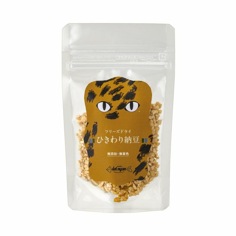 納豆の栄養素を壊さず、ネバりが気にならないようフリーズドライ加工しました。そのあと、細かく砕きより食べやすいひきわりタイプに仕上げております。納豆の栄養をそのまま摂ることができるだけでなく、保存料を使用せずに12ヶ月の保存期間を実現しています。