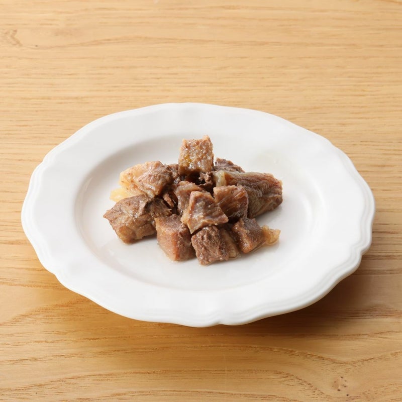 ※肉を水にさらしたり、下茹ですることで防ぐ方法もありますが、ニャンコが牛肉本来の味わいを最大限愉しめるよう、旨みをそのまま閉じ込める調理法にこだわりました。