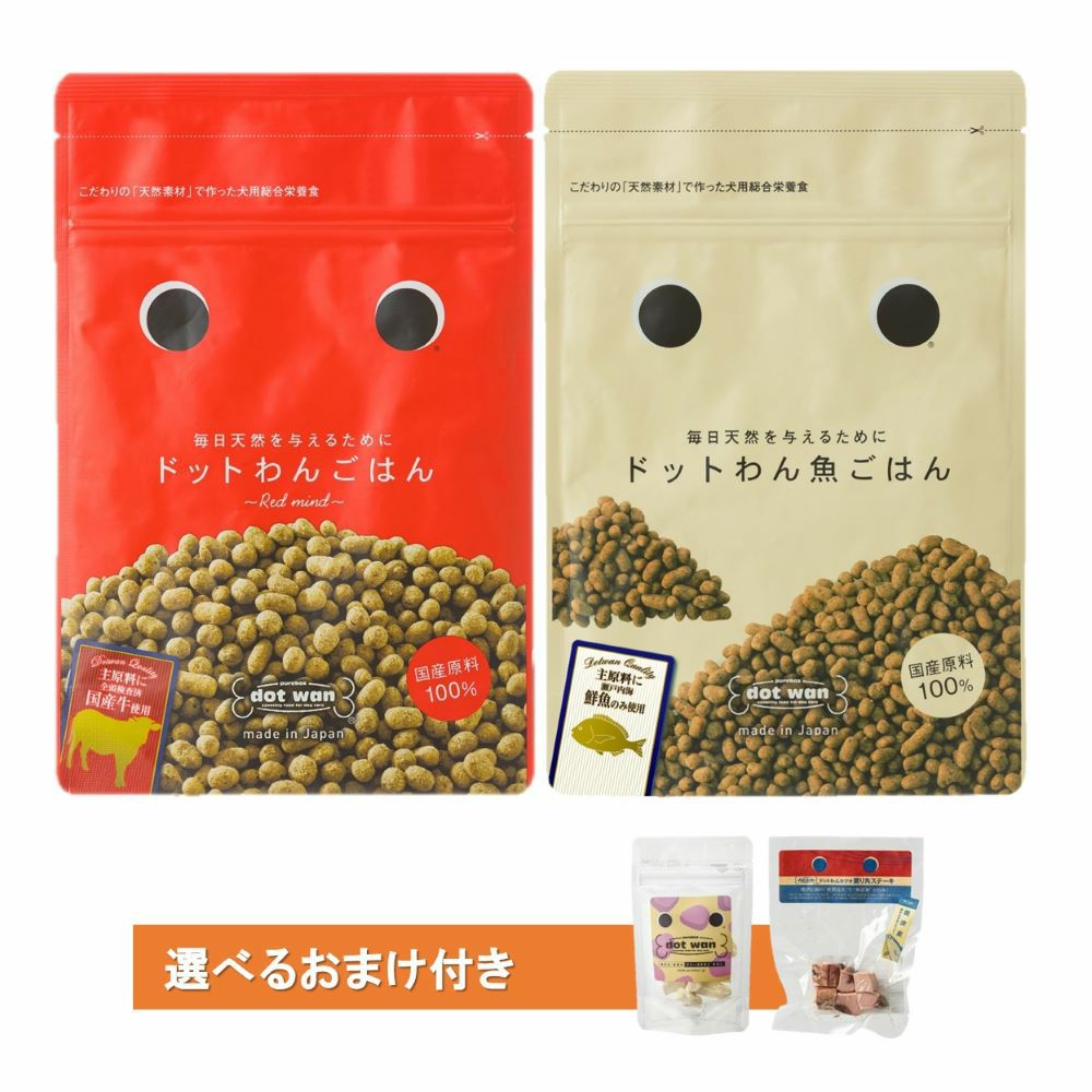 ごはんとおやつ10種類をお試しいただけるセットと、ごはん4種類をお試しいただけるセットをご用意しております。
