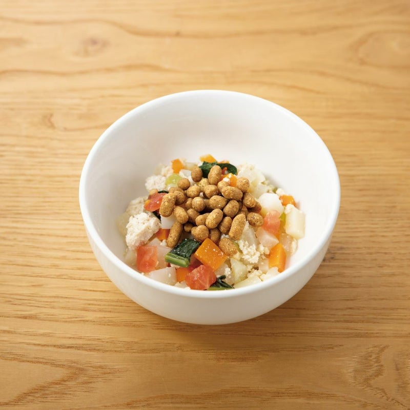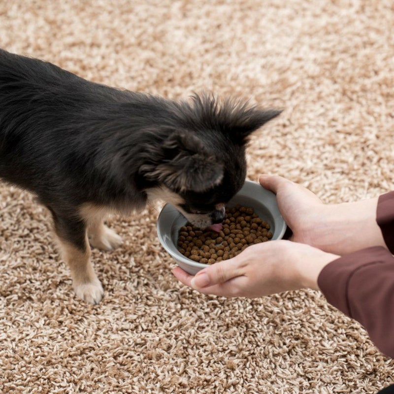 【シニア犬】活動量(お散歩、体を動かす遊び、起きている時間など)が減っている場合は体重が増えすぎないよう少なめに、活動量が以前と変わらない場合は成犬時と大きく変える必要はありません。