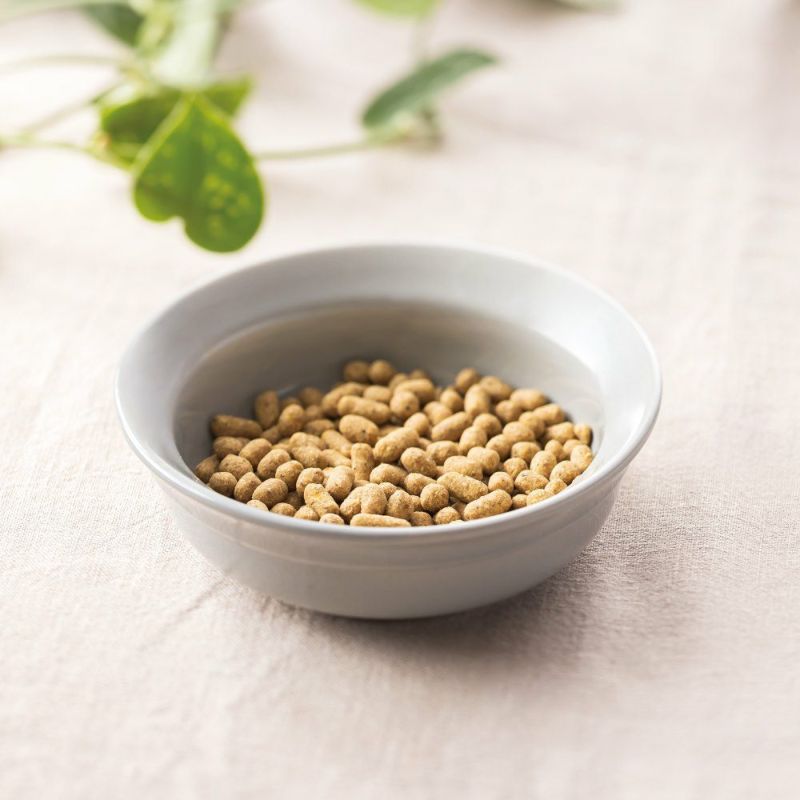 オイルコーティングなしのサラッとした手触りで、与えやすい小粒サイズです。