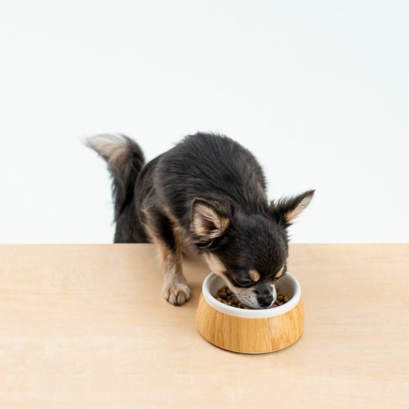 【シニア犬】活動量(お散歩、体を動かす遊び、起きている時間など)が減っている場合は体重が増えすぎないよう少なめに、活動量が以前と変わらない場合は成犬時と大きく変える必要はありません。
