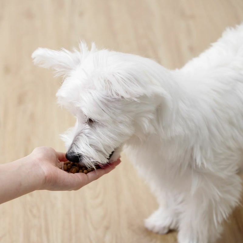 【シニア犬】活動量(お散歩、体を動かす遊び、起きている時間など)が減っている場合は体重が増えすぎないよう少なめに、活動量が以前と変わらない場合は成犬時と大きく変える必要はありません。