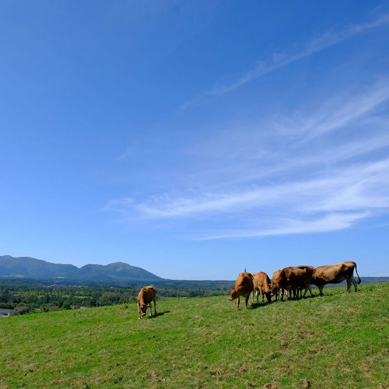雄大な自然と澄んだ空気に、何回でも訪れたくなる場所です。ここで育つジャージー仔牛は、脂肪が少なくとろけるような肉質が自慢。