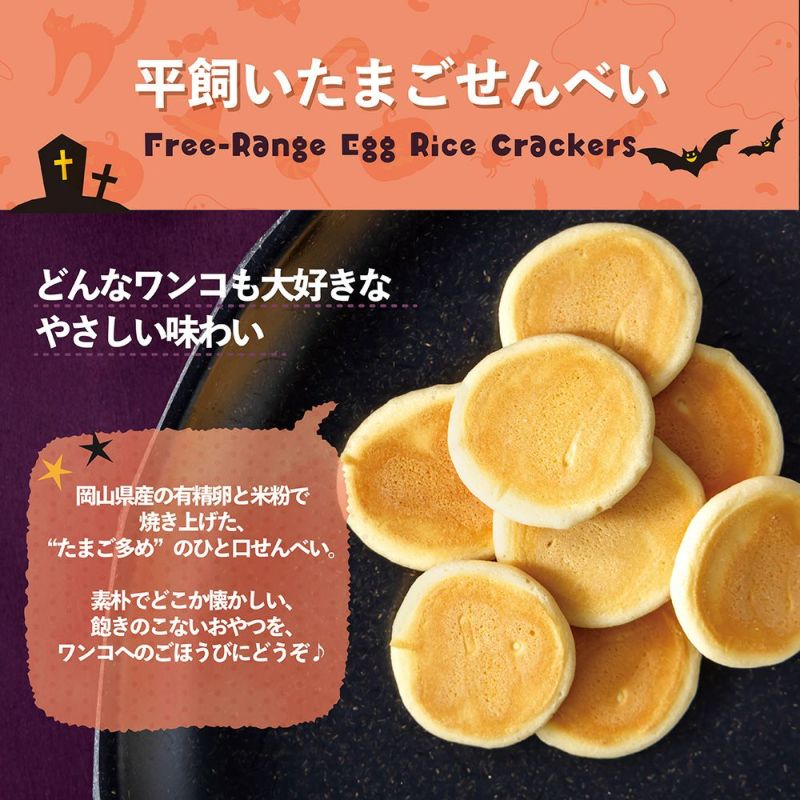 岡山県産の有精卵と米粉で焼き上げた、“たまご多め”のひと口せんべい。