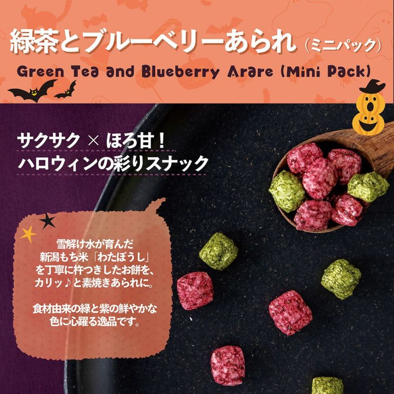 カリッ♪と美味しい緑茶とブルーベリーあられのおまけつき。