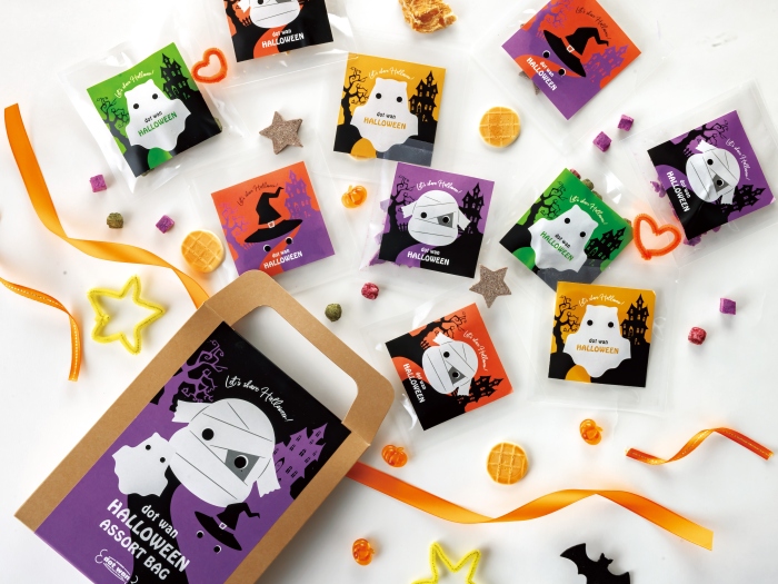 2025年のドットわんハロウィンは、かわいい手提げバッグに美味しいおやつを詰め合わせ!