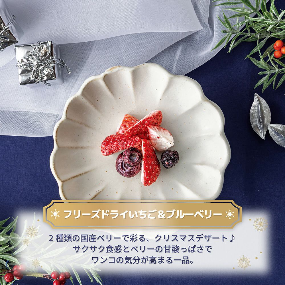 他の画像を見る 期間限定 おやつ ドライ ドットわんの逸品 フリーズドライいちご&ブルーベリー ¥ 682 税込 カートに入れる お気に入りに登録する 4.50 (16) 2種類の国産ベリーが共演。 独自製法で素材の色や美味しさ、そのまま!