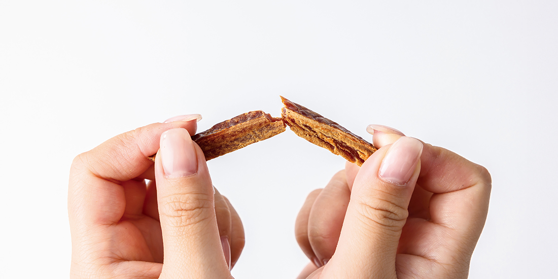 しっかりと手に持ち、奥歯で少しずつ噛ませるようにして与えてください。