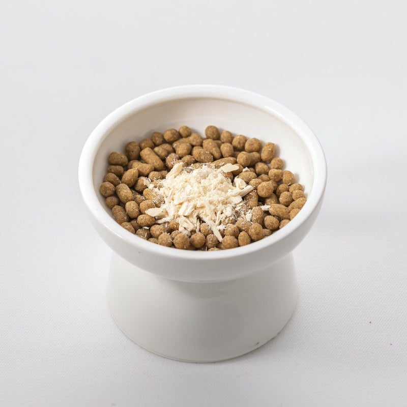新鮮な鶏胸肉を使用した、素材感にこだわった一品。旨みを逃さないよう、ボイルではなく 表面に熱を通すスチームで下処理し、フリーズドライ加工でフワフワ食感に仕上げました。 サラリとした手触りで与えやすく、そのままはもちろん、ぬるま湯に浸したり、つぶしてふりかけにするなど、手軽にアレンジできる点も魅力です。