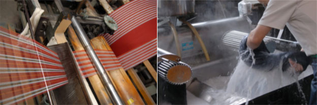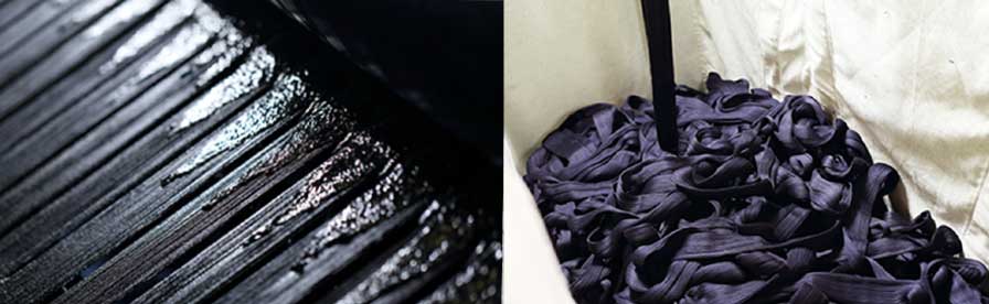日本綿布さんは、備後絣(びんごがすり)の伝統的な草木染めや藍染めの染色技術、備中小倉織からの撚糸や織布の技術を発展させるだけでなく、サンフォライズ(防縮)加工や洗い加工の設備投資も積極的に行い、お客さまの多様なニーズに応えられる一貫生産体制を築いてきました。
