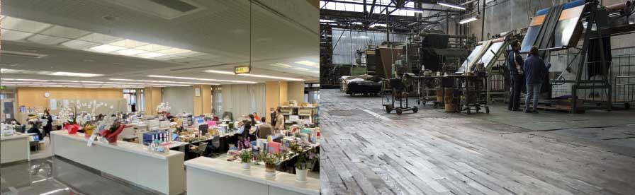 一例としては、「色合わせ専用部屋」があります。色味を確認するのも仕事のひとつですが、エコ化の代表格LED照明だと実際とは違う色に見えてしまいます。 環境だけを考えれば、すべてをLED化するのが手っ取り早いのですが、業務上それができないわけです。 じゃあ無理なのか?何もできないのか?ではなく、色合わせ作業が正しくできる環境を区切り、それ以外で支障がないスペースはすべてLED照明に替えました。