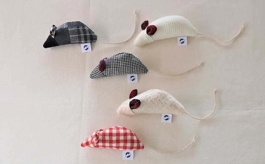 世界三大毛織物産地の一つ、愛知県の尾州。 ウールは、素材自体が動物性で呼吸をしているため、吸水性や放湿性に優れています。 同時に抗菌作用も非常に強力で、汗や体臭を消臭してくれる効果まであります。 そんな特長をねこちゃん、飼い主さまに感じて欲しくて、尾州エリアのネズミが誕生しました! 吸水性や抗菌作用があるから安心・安全に遊んでいただけます!