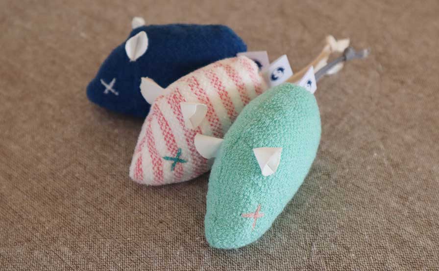 そんな湖東エリアの商品を、ねこちゃん、飼い主様にも感じて欲しくて湖東エリアのはぎれネズミが誕生しました。