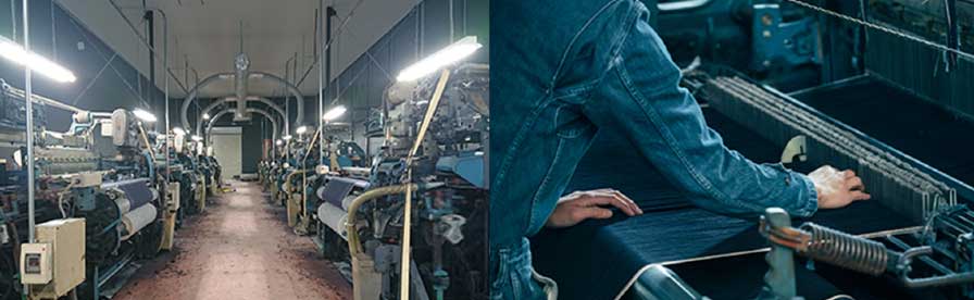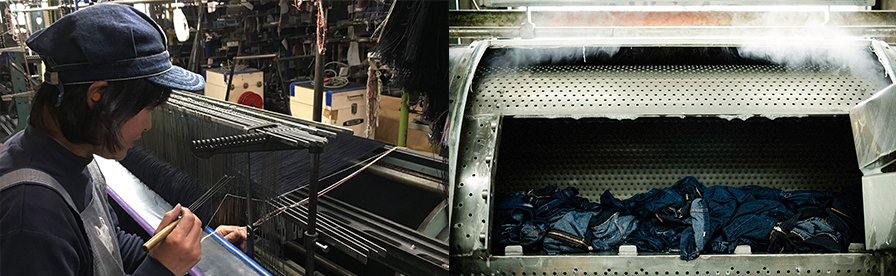 児島のジーンズの特長は、旧式の織り機で織る(セルビッチデニム)があります。