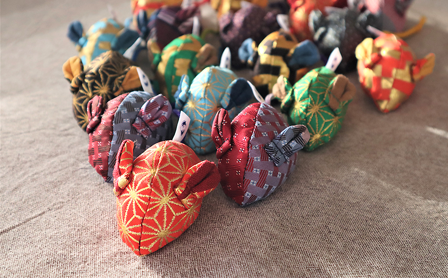 せっかくなので、桐生が誇る豪華な「金襴生地」を使ったらどうだろう?ひな人形の衣装にも使われている金糸や銀糸を贅沢にあしらった生地を選び、猫の気持ちになって試行錯誤しました。どうやったら猫が楽しく遊んでくれるのかと頭をひねり、時には自宅の猫と一緒に遊びながら、一人ひとりが自ら考え・楽しみ、生きがいを持って仕事に取り組んだ結果、「桐生のはぎれネズミ」が誕生しました。