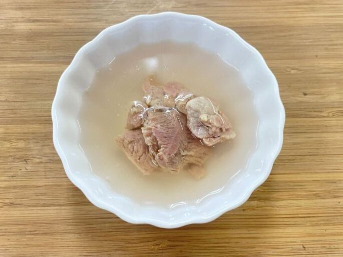 パターン①:お肉を下茹でしてからパウチに詰め、レトルト加工したもの